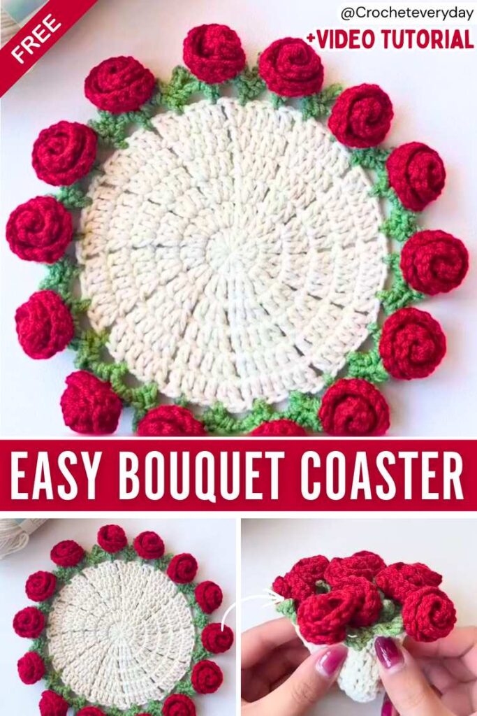 Choose from the crochet mini bouquet, the vase flower, the hairclip flower, and the popular bouquet coaster. As for the flower types, I have selected the tulip, daisy, and rose. So, let me select inspiration for your next project.