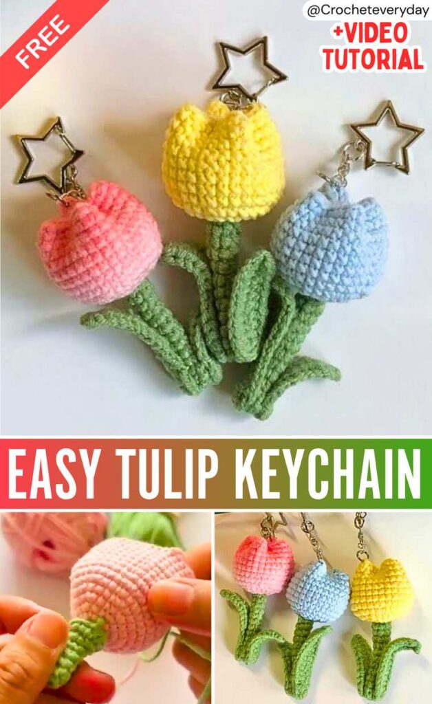 Let’s crochet a Chibi amigurumi tulip keychain using the “Pinch and Sew” method. This is the lowest-sew and the easiest method to crochet a tulip flower.