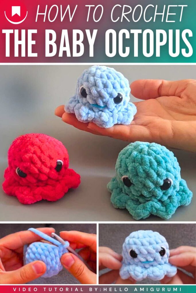 The crochet mini octopus is one of my favorite plushies, as it is a stashbuster and makes an irresistible fidget softie. Luckily, this variation starts with a no-ring method and is crocheted from top to bottom with arms made after stuffing by surface-stitching.
