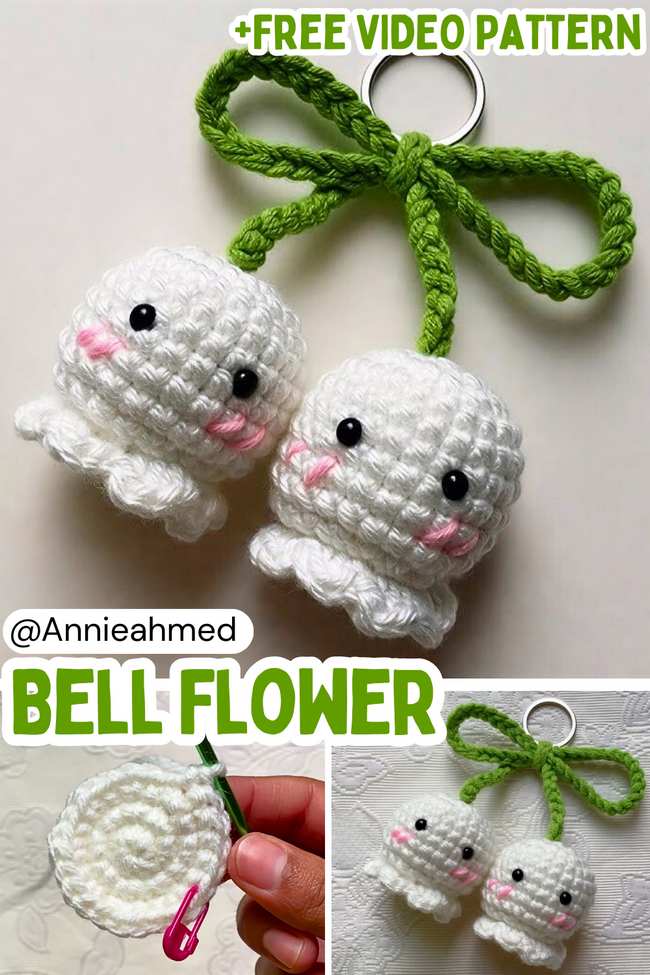 From a simple variation like a basic flower with eyes to a crochet flower doll, and even a bell flower ghost charm, I am pretty sure you will admire the creativity of the designs.