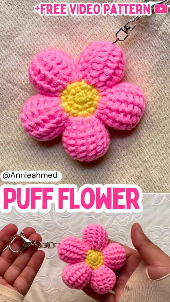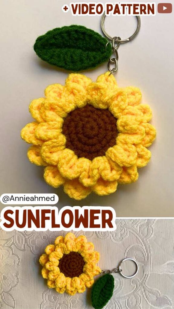 Let’s crochet a 3D sunflower keychain featuring two layers of petals without any sewing. The clever design lets you crochet both sides of the centre together by working in the spiral rounds.
