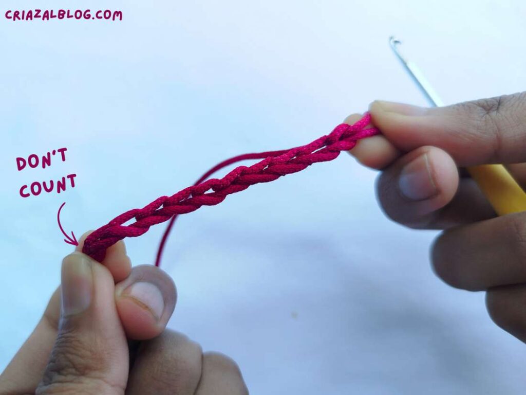 Counting is a bit confusing, as the knot stitch just below the knot looks almost the same as the chain stitch. That is in the shape of a V. However, this is not counted as a chain stitch in most crochet patterns.