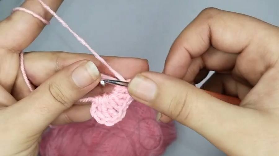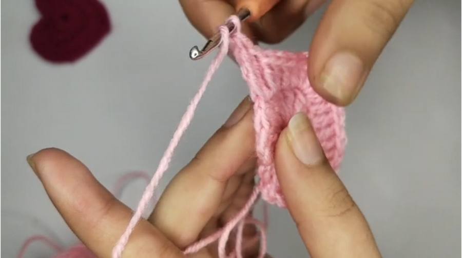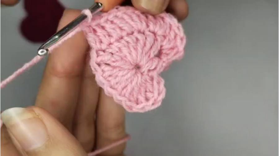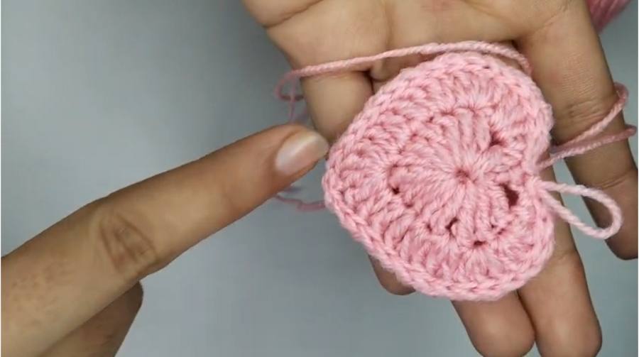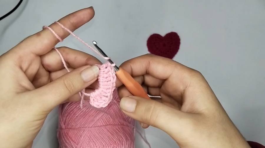 - In round 1, I will crochet the heart by working stitches of different heights.