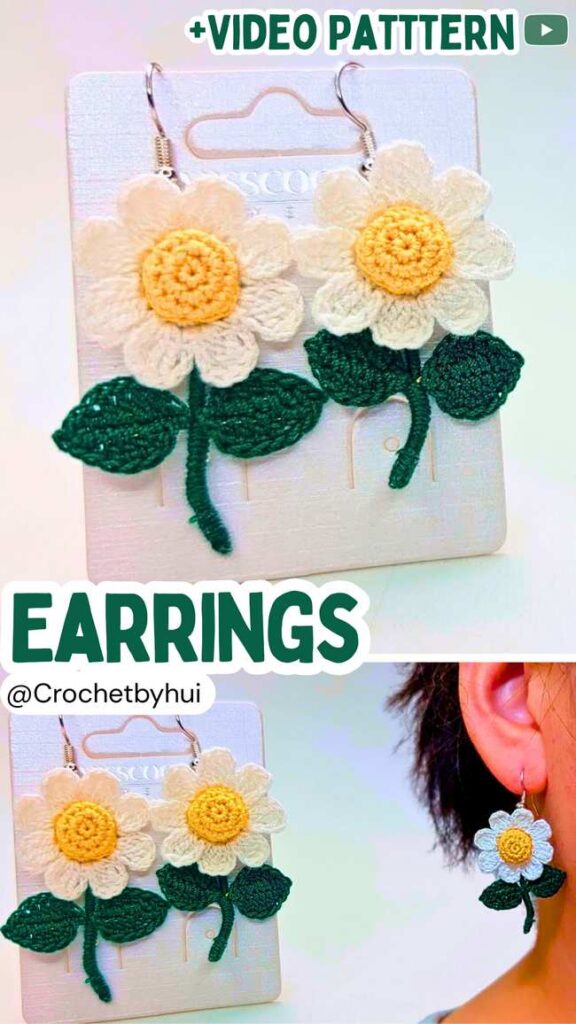 The flowers are usually not supposed to be crocheted as full plants for the crochet earrings. But these mini daisy earrings were so elegantly designed, still quite shorter even with a stem and lightweight, I could not resist sharing the tutorial.