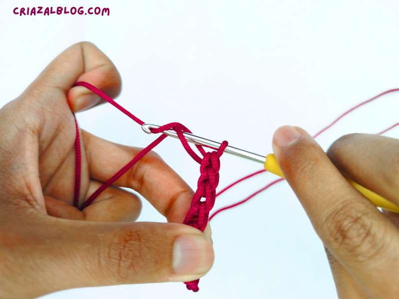 - Step #5: Pull through both the loops on the crochet hook.