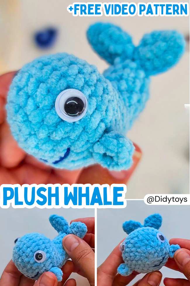 I have mostly found the whale plushies with plain bodies, but this small design has surprised me. Use the plastic googly eyes and 3.0mm crochet hook for it.
