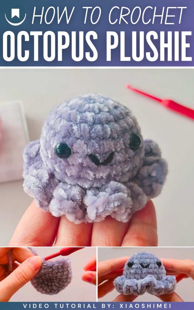 Unlike the one I talked about in chubby animal plushies, this octopus plush has ruffled no-sew arms instead of the pointy scalloped arms. I have linked to an English tutorial, so don’t worry, you can easily follow along. Crochet it in pink or grey!