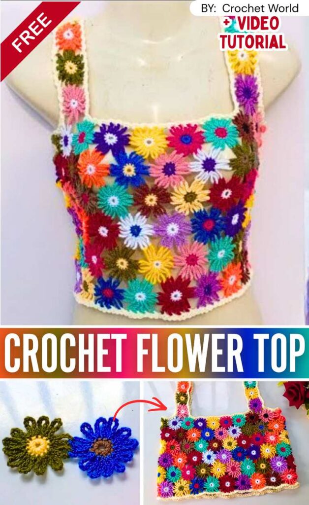 This is a bit advanced, but a colorful and irresistibly elegant crochet tank top that you won’t want to miss. I have talked about the loopy-petal crochet flower multiple times.