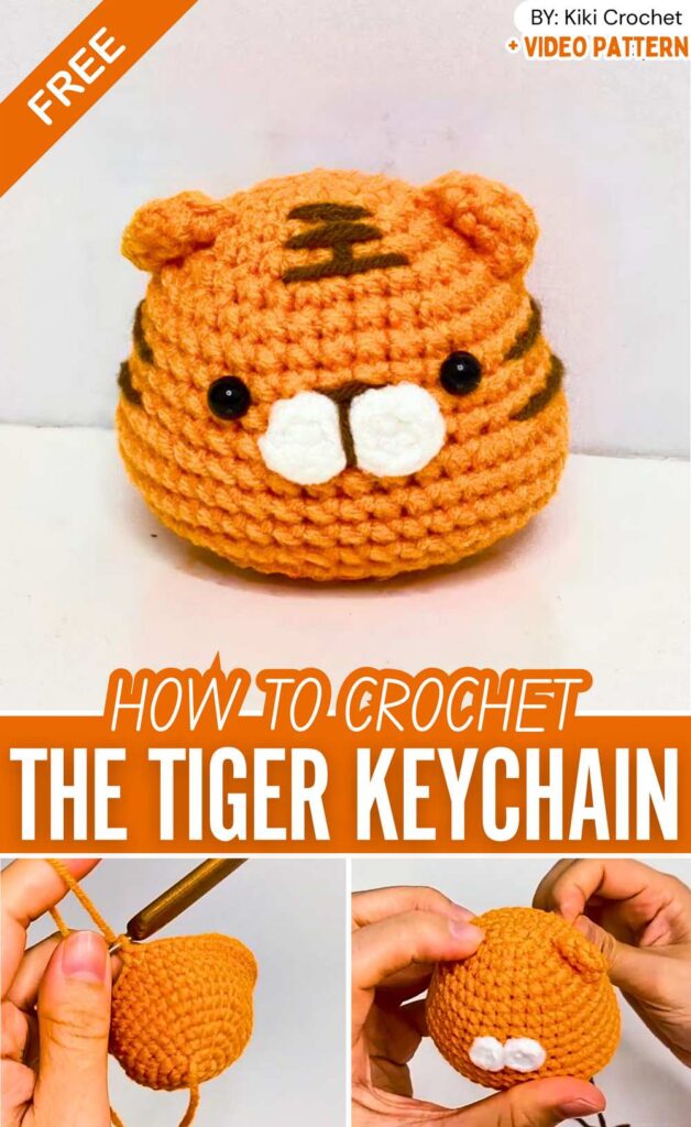 You can also use the no-sew head of this tiger keychain as a general animal head base, as it is perfectly shaped. There are add-ons like single crochet ears, puff stitch muzzle, and safety beads.