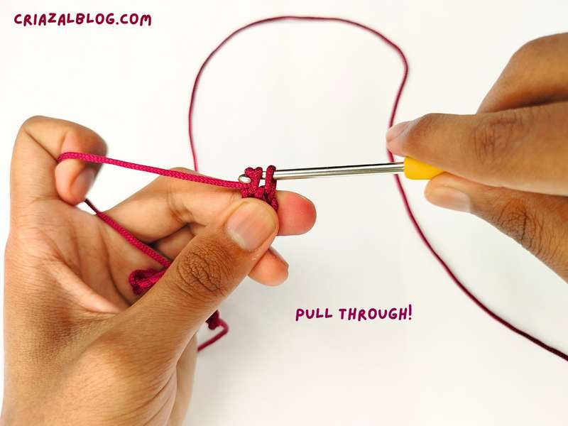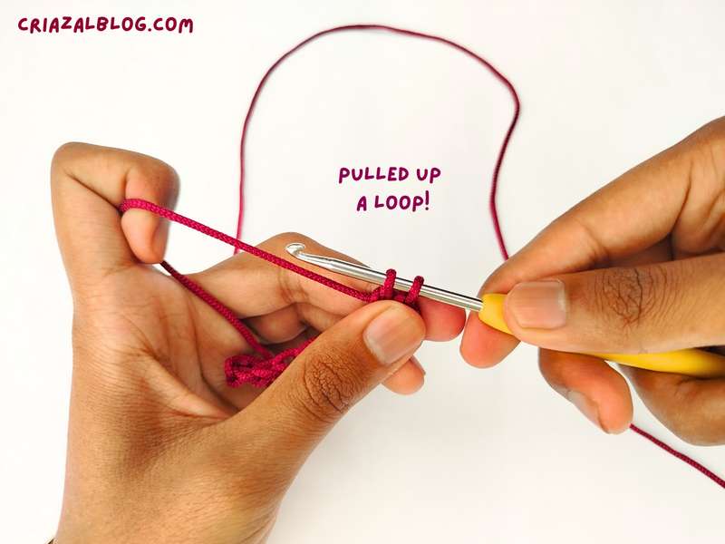 • Complete the single crochet by pulling up a loop on the crochet hook.