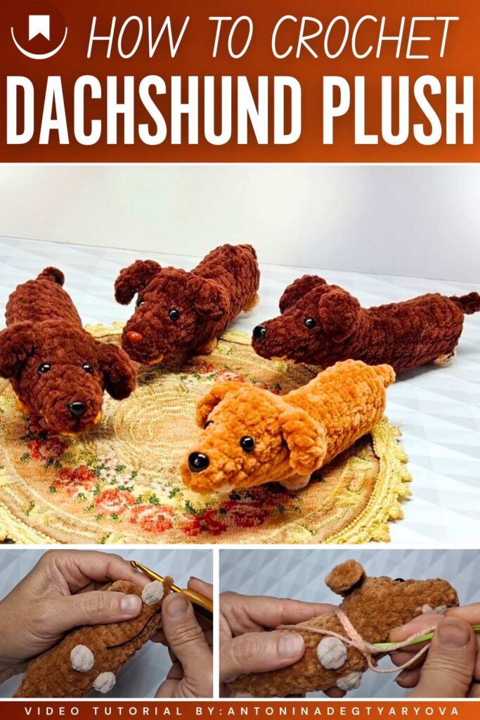 Let’s crochet a 15 cm long Dachshund plushie within 45 minutes, following this quick pattern. As with any Dachshund amigurumi, it is crocheted in a REAL ANIMAL pose, that is, with four legs.