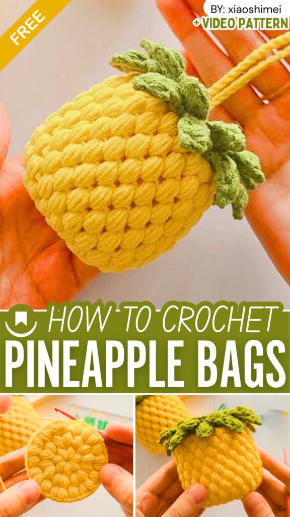 For summer, my 100% recommendation is this small pineapple pouch with a drawstring closure. It looks irresistibly elegant with puff stitch all around, or so-called pineapple stitch.