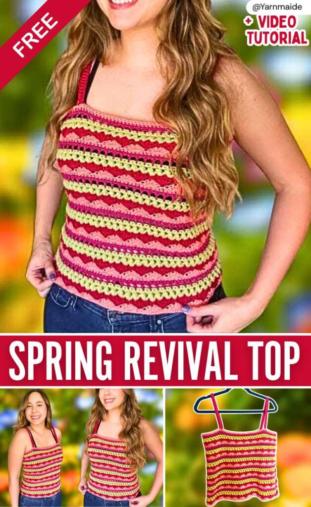 It shows off an unmatched combination of shell, puff stitches, and open double-crochet rows, with stripes of three colors of yarn. So, it looks really elegant and can revive colors in your tops.